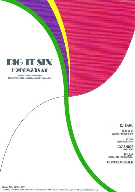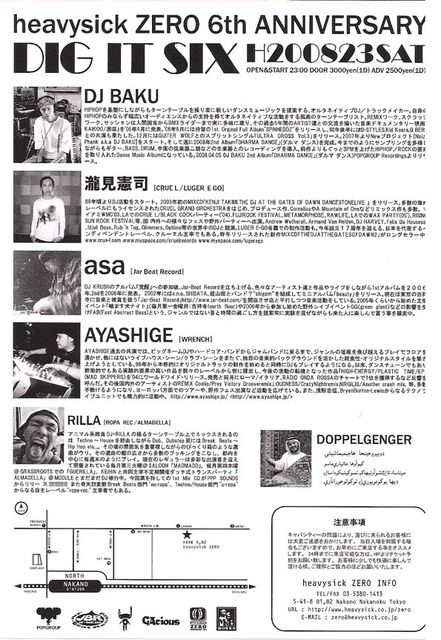 CLUB heavysick ZERO 6th Anniversary 【DIG IT SIX】 2008.8.23(sat)@中野CLUB heavysick ZERO OPEN&START 23:00 / DOOR 3000yen(1D) ADV 2500(1D)