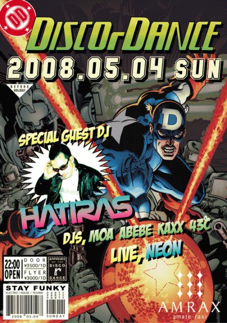 4年目に突入した100% PURE FUNKYパーティDISCOrDANCE(ディスコーダンス)がAMATE-RAXIに登場! GOLDEN WEEK SPECIALと題された今回はCLUB AMATE-RAXIと国内最強DISCOレーベルCARIZMAの全面協力のもとFUNKY頂上決戦が実現!