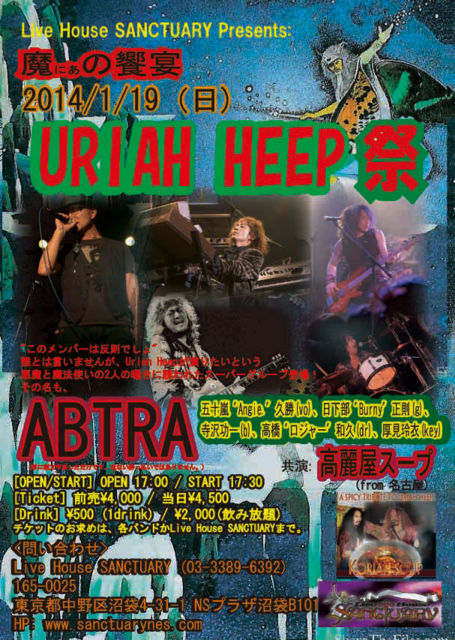 <問い合わせ> Live House SANCTUARY TEL/FAX 03-3389-6392 MAIL : sanctuary@s2.dion.ne.jp HP URL : http://www.sanctuarynes.com/ 165−0025 東京都中野区沼袋4−31−1 NSプラザ沼袋B101