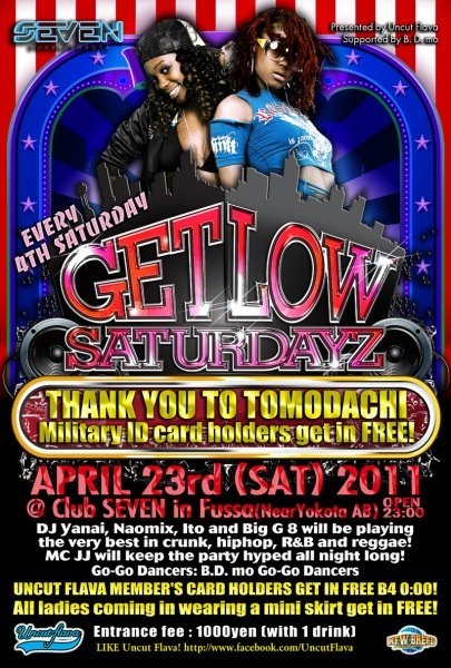 開催終了4/23(土) 横田基地の近くのアメリカ人がたくさん集まるクラブでのhiphipイベント!GET LOW SATURDAYZ "Thank you to TOMODACHI" @ 福生SEVEN