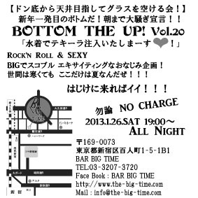 ========================================= ■1月26日(土) 『BOTTOM THE UP VOL.20』 @BAR BIG TIME