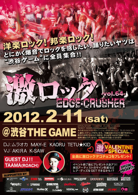 海外&国内バンドが入り乱れ毎回ソールドアウトの激ロックFESを開催している激ロックによる、激アツROCK DJ PARTYが2012年2月11渋谷ゲームにてオールナイト開催!!!!