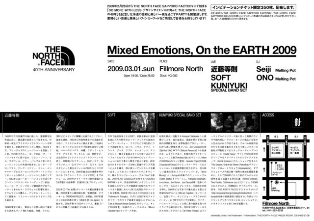 2009年2月28日からTHE NORTH FACE SAPPORO FACTRY で始まる「DO MORE WITH LESS デザインサイエンスが育んだTHE NORTH FACE の40年」を記念し北海道の皆様と楽しい一夜を過ごすPARTYを開催致します。素晴らしい音楽と美味しいフードをご用意して皆様をお待ちしています。 尚、2月14日よりTNF札幌ファクトリー、札幌池内両店にてインビテーションチケットを限定350枚配布しております。店頭にてスタッフにお申し付け下さい。尚、お一人様1枚限りとさせて頂きます。