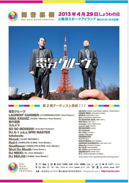 電気グルーヴ LAURENT GARNIERfrom France NINA KRAVIZ (Rekids / Moscow) カルメラ DJ A-1 a.k.a SPIN MASTER Red-I(DUBPLATE/ B-SIDE) from Manila Soulflower(DUBPLATE/ B-SIDE) from Manila MONASHEE Shut Da Mouth from Korea 鈴木亜美 DJ NIKKI (KL) from Malaysia SO SO MODERN from New Zealand Lainy J Groove RIDDIMATES キムウリョン NAKATSUKA(XXX/WICKED!) DAISUKE KAKIMOTO(Fluid / Metro / M.L) Silverfox (Paradise to Paradise) DJ YUJI(YABAI RECORDS) DJ TOYO(BLACK BEATX BOX) DERRICOTT(MAGIC J.H.P) E.T.(FINEPLAY RECORDS/3D VISION) Kireek (PLANT RECORDS) HILOCO (KRAUSS / ELECTRONYX/ FAMFATAL / HOUSE NATION) PRISM MIND (iSSEi iSHiDa & O-MAN) MUKAI (ELECTRONYX/NYX) Shu (ELECTRONYX/Digital Vision) DJ MASTER AZIA (EDEN/AILE') WATALU (TBG/end.) masaya (exodus/Digital Vi sion) secret club (o-plus) DJ MULAN(B-SIDE) from Manila tofubeats okadada DJごはん (neco眠る) And many more special guests coming soon!!