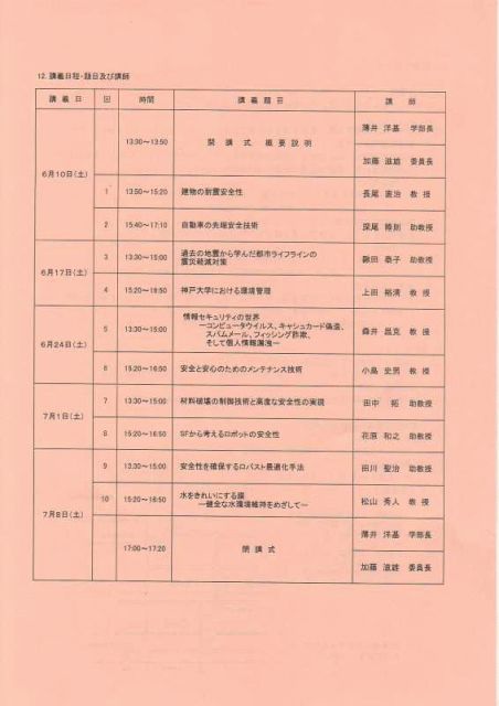 開催終了神戸大学工学部公開講座 「安全な生活のための工学の役割」