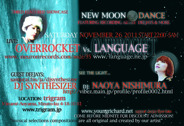 NEW MOON DANCE SAT. NOV...26th START 10PM 土曜日11月26日は22時開始 NEW LOCATION: trigram 南青山 東京都港区南青山4-18-10 B1F MINAMI-AOYAMA 4-18-10 MINATO-KU B1F