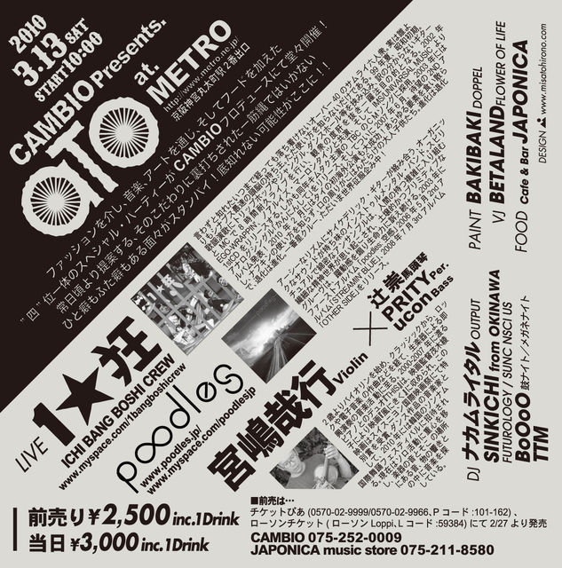 開催終了03/13 (sat) poodles/1★狂/BETALAND @CLUB METRO