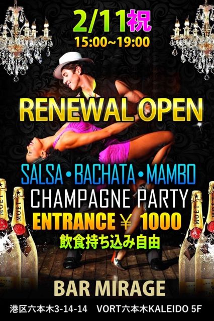 この度 BARミラージュ のリニューアルにより 六本木に新たなサルサスポットが誕生しました!