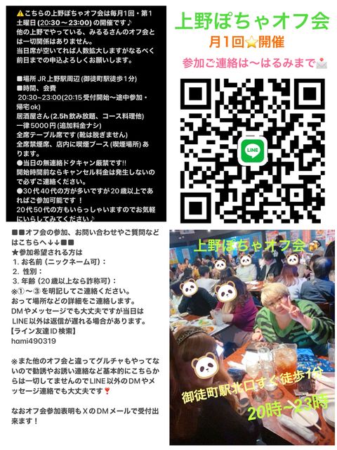 ¡Ú¾åÌî¡Û3/7(ÅÚ)20:30³«ºÅ❣2026ǯ3·î7Æü(ÅÚ)❣¾åÌî¤Ý¤Á¤ã¥ª¥Õ²ñ¡¡¸æÅÌÄ®ÅÌÊâ1ʬ