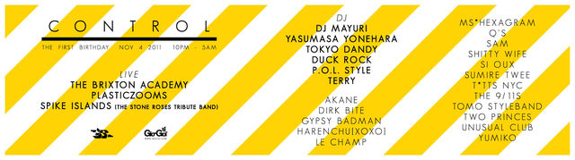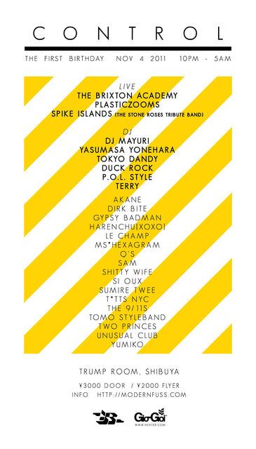 ☆CONTROL: The First Birthday☆ Friday, November 4th Trump Room, Shibuya 22:00-05:00* 3000円 door 2000円 flyer/discount** Cloakroom 500円