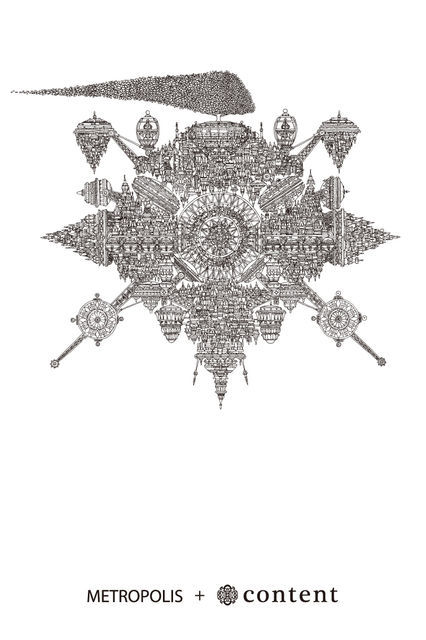 極細素描画で描かれた「METROPOLIS」は心と科学の進化のバランスがとれた世界。