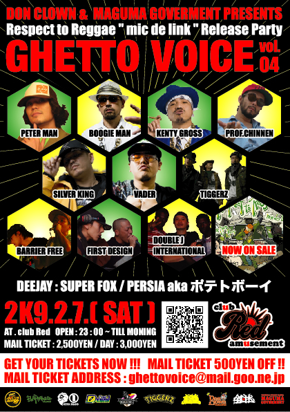 3大都市ツアー 1/31(土)『GUN SHOT〜Respect to Reggaeリリース・パーティーin大阪』堺@Ten-g 2/7 (土)『GHETTO VOICE〜Respect to Reggaeリリース・パーティーin愛知』岡崎@Red 2/21(土)『MASTER BLASTER〜Respect to Reggaeリリース・パーティーin東京』渋谷@eggman
