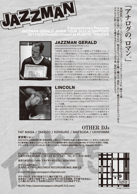 GUEST DJ JAZZMAN GERALD(JAZZMAN RECORDS/FROM U.K.) LINCOLN(SEARCHING/BEBOP SQUARE/SOUL FEELING)
